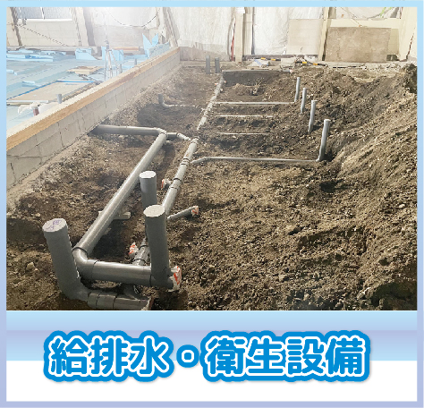 個人宅等の新築工事に伴う給排水設備工事からテナントや事務所の衛生設備、公共施設・商業施設やマンションなどの貯水槽清掃・点検業務など、今ままでの豊富なノウハウを駆使し、幅広いお客様のニーズにお応えできます。